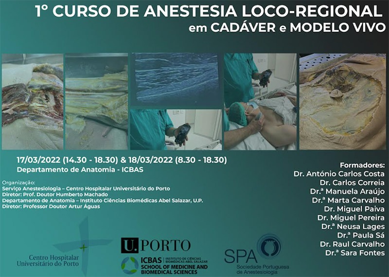 1º Curso de Anestesia Logo-Regional em Cadáver e Modelo Vivo | 17 e 18 de março de 2022 – Departamento de Anatomia – ICBAS