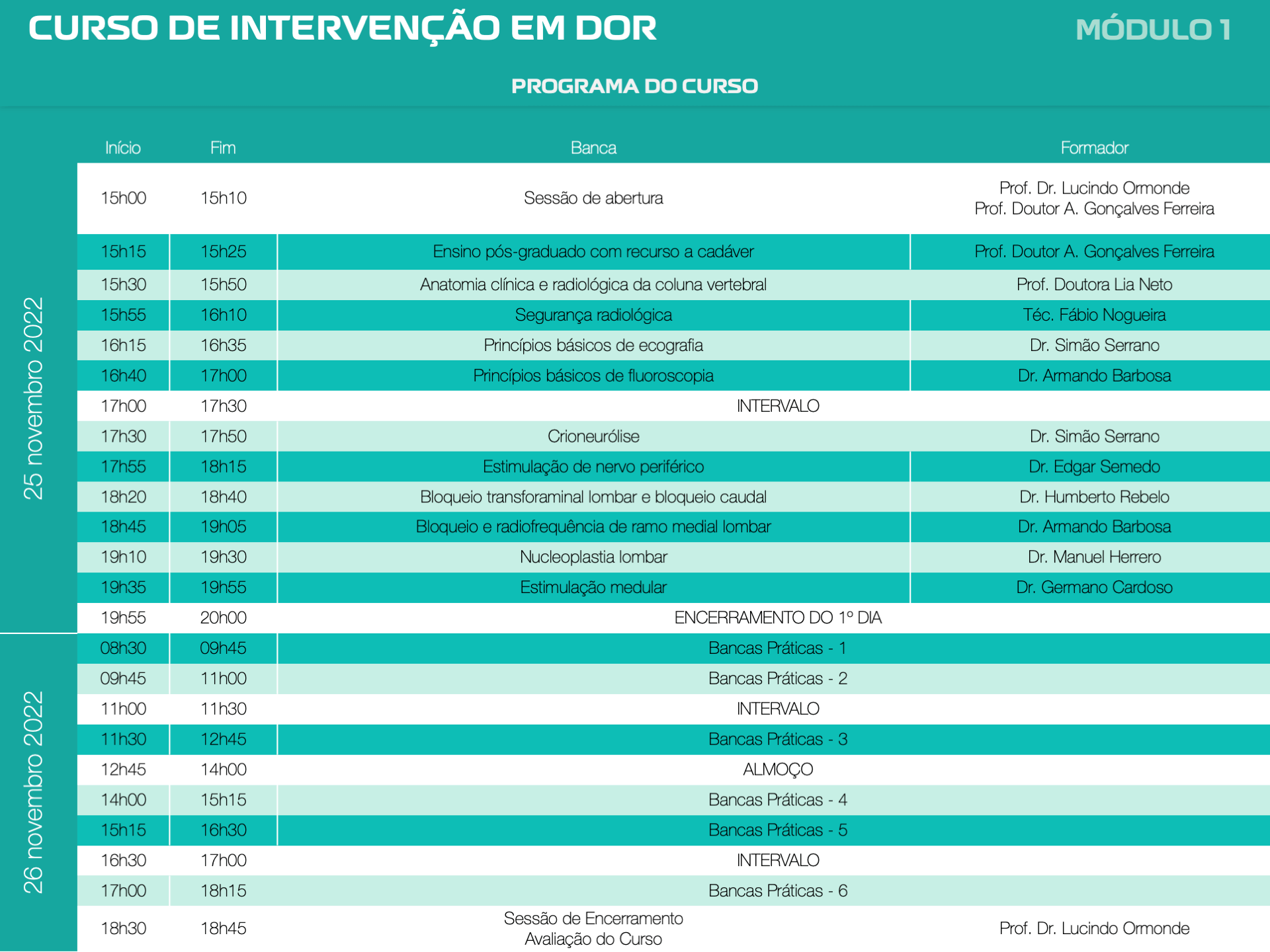 Curso de Intervenção em Dor – Módulo 1, 25 e 26 de novembro de 2022